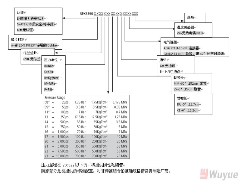 輸出,模擬:4-20mA(標(biāo)準(zhǔn)壓力,溫度可選) 輸出,數(shù)字:HART 綜合精度 (錯誤)(20-100%滿量程): ±0.15%滿量程(3M和3M以上) ±0.25%滿量程(1.5M和1.5以下) 溫度漂移(77-572℉,25-300℃): 0.001%滿量程/℉,最大(0.001%滿量程/℃,最大) 重復(fù)性:±0.1%滿量程 爆破額定壓力:2X滿量程 超壓 額定:1.5X滿量程 量程:750至10,000psi 可調(diào)范圍:6:1調(diào)節(jié)比,向下 負(fù)載電阻:250歐姆@18Vdc;500歐姆@23Vdc |